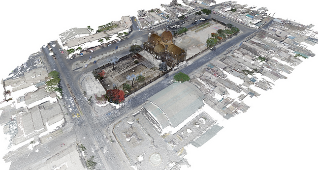 Se realizó un escaneo láser terrestre y un levantamiento fotogramétrico con dron, generando una nube de puntos de alta precisión. Con esta información se desarrolló un modelo 3D digital que sirvió como base para la restauración y conservación del templo tras el sismo del 2007.